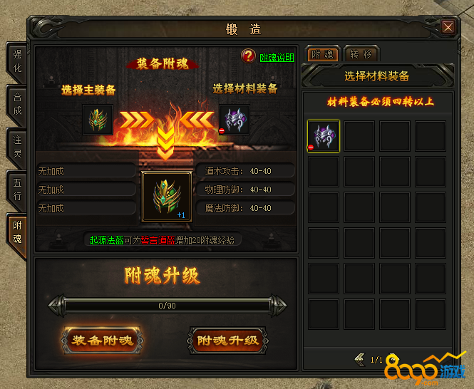 搜索"8090网页游戏"在散人传说的游戏中,有许多新手玩家看到锻造面板中有个附魂,可是选择了装备又附魂不了,那么到底如何附魂,附魂又有什么作用呢?今天小编就带大家来了解一下。