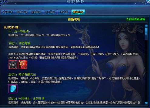 五一推出了充值大返利和消费送豪礼的活动,此外,玩家可以用劳动者奖章在活动商城中兑换时装、坐骑等。