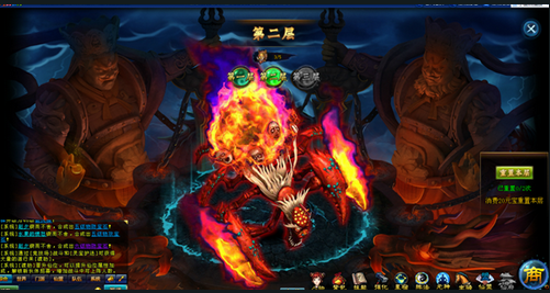 镇妖塔共6层,每层会收入五个玩家打败的魔物,每击败一个镇妖塔中的魔物就可以获得装备升级卷轴和真元。