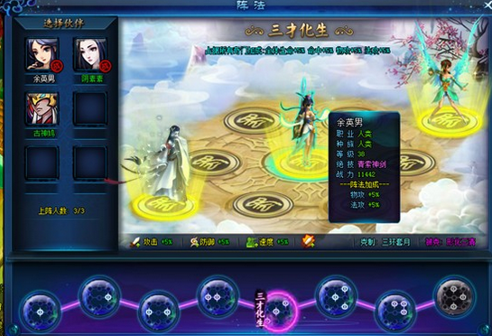 目前有八种不同的阵型选择,阵法使用的是九宫格设计,按照不同阵法会有与之对应的1-3个阵眼,占据所有阵眼就会有属性加成。