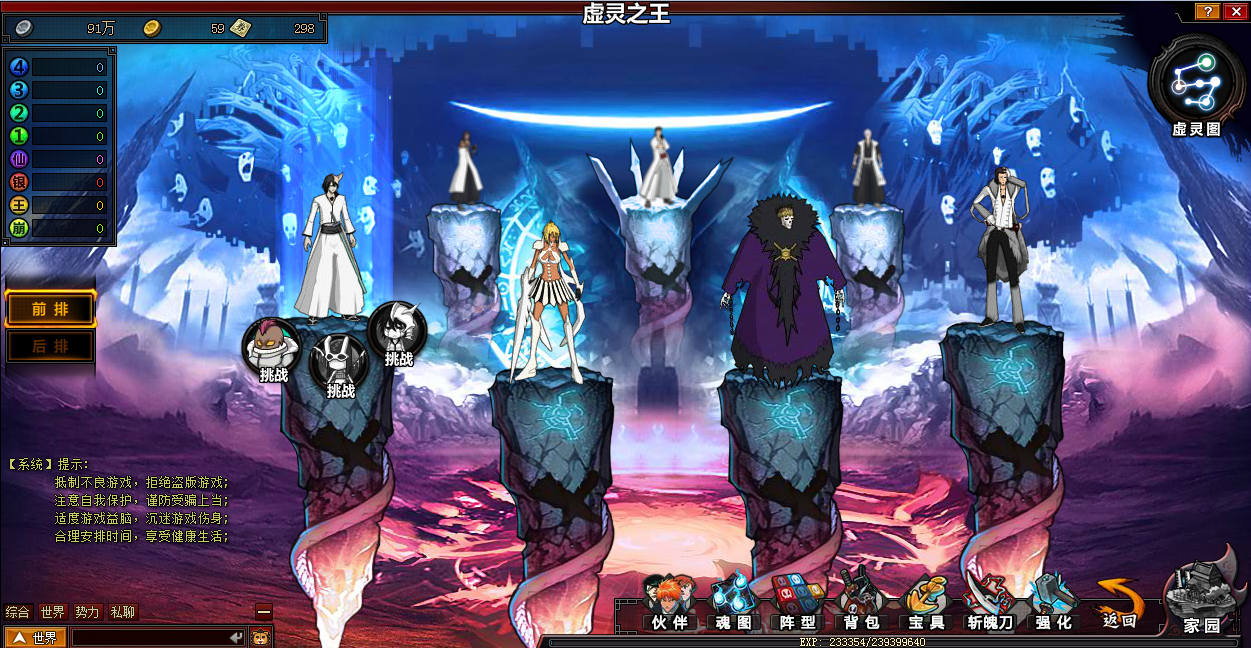 血量:推荐高血量的伙伴,剑八、白哉等。可以通过更换宝具,灵石做到足够的血量的,以便争取更多的机会击杀虚灵。