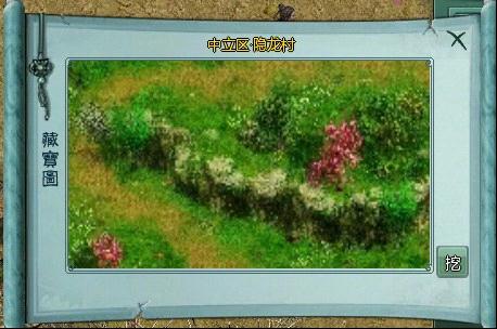 例如,上面的藏宝图在中立区隐龙村,你就要首先找到图中的位置,等你走到图中的位置之后点击图上面的挖,图上面会提示你宝藏的具体位置该怎么走。