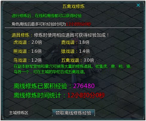 搜索"8090网页游戏"想在线下线都拿经验?当然要知道五禽戏法修炼。在主城的华佗附近可以进行五禽戏的修炼,修炼时可以获得许多经验。在修炼时离线一样可以获得经验奖励哦!
