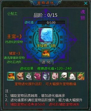 也有玩家认为刷紫色宠物也要选个有天地灵气的地方进行,宠物们都喜欢大自然气息很足的地方。在喂丹药之前,先把宠物的寿命补满,放入背包中,再进入家族,在家族祈祷的那棵菩提树下服用洗髓丹,如果没有家族的就在商店购买一个随机卷轴,随便去到一个鸟语花香的地方。宠物也有自己的思想和灵性,希望在更美好的地方得到品质的进化,这样想来,进化的时候要选好地方也有一定的道理。