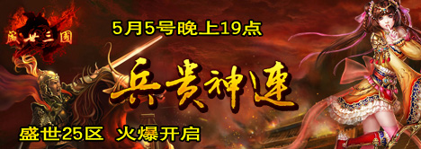 经过一系列的准备工作,《盛世三国》双线25服–“兵贵神速”将于5月5号晚上19点震撼开启!与此同时,所有玩家都可以通过微端、网页版、完整客户端三种不同的登录方式进入到同一个服务器内!
