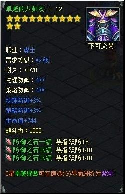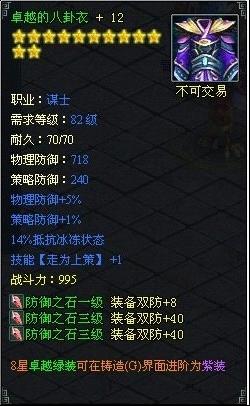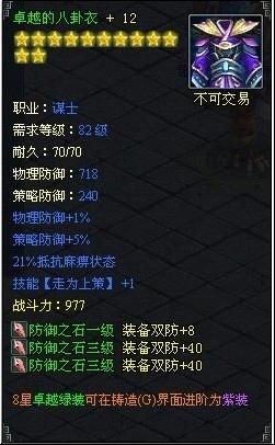 现在就拿一件谋士的衣服来做下演示,装备保星后如下图: