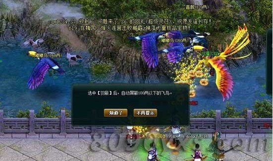 1. 40级以上的玩家可以通过“传”界面进入冀州围猎场使用箭支射击各种鸟类,每次射击有概率击中,击中可获得大量绑银奖励