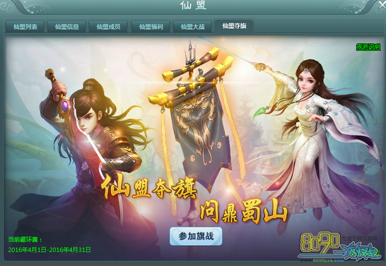 搜索"8090网页游戏"玩游戏伙伴很重要,我们的仙盟就是我们的家,在蜀山战纪,捍卫仙盟的战争仙盟夺旗大家不可错过,大家是否对仙盟夺旗有一定的了解呢?小编今天就来向大家详细地介绍我们的仙盟夺旗是怎么玩的。