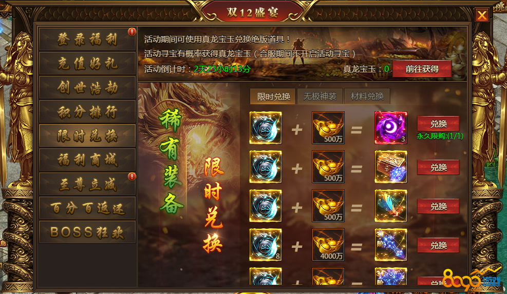 1.活动期间可消耗真龙宝玉兑换绝版道具