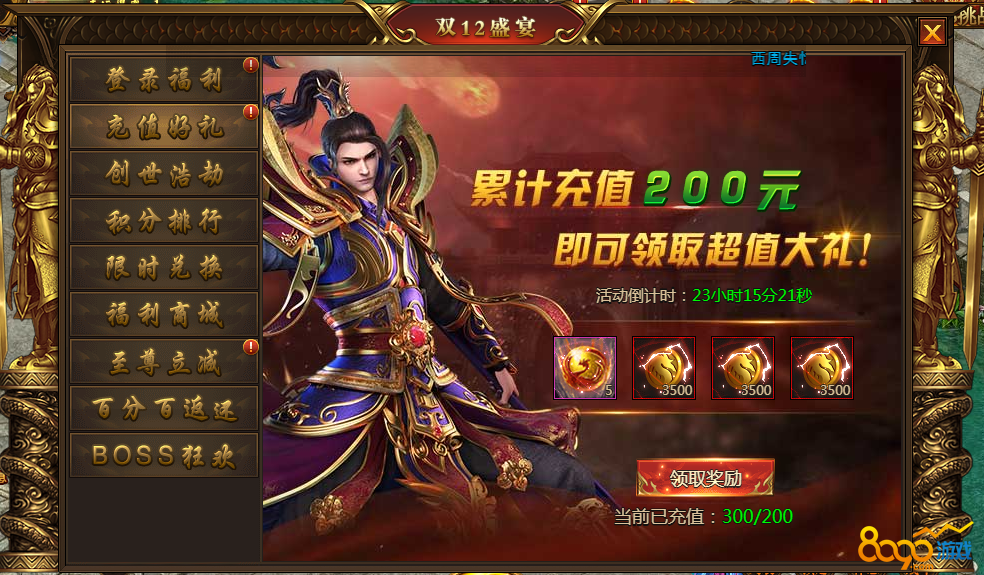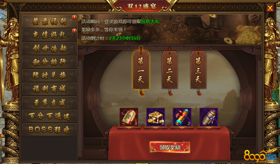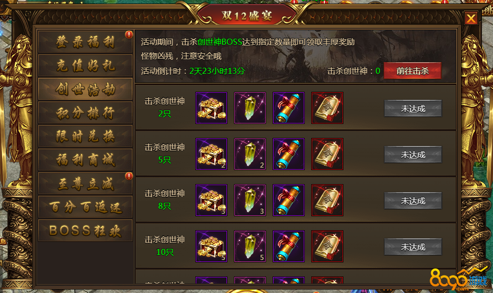 1.活动期间击杀创世神达到指定只数即可领取丰厚奖励;