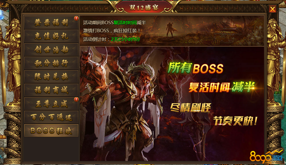 1.活动期间BOSS复活时间减半(跨服BOSS除外)