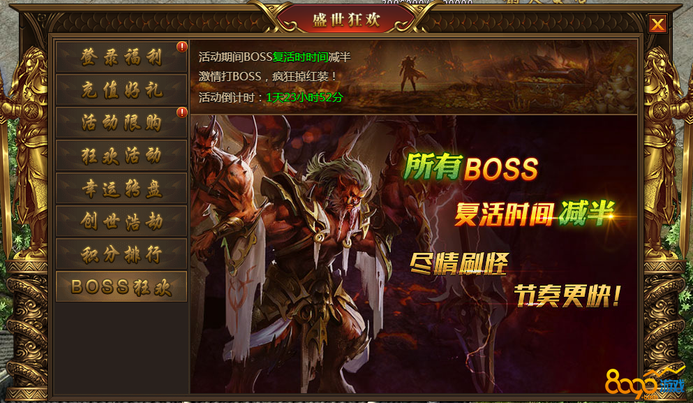 1.活动期间BOSS复活时间减半(跨服BOSS除外)