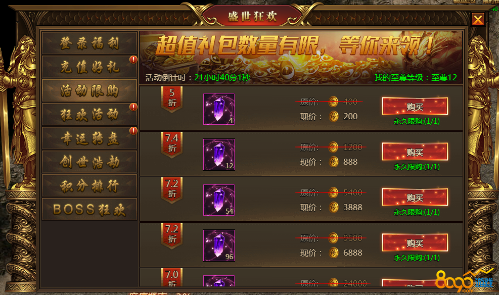 活动内容:活动期间花费传奇币可以直接购买各种优惠的材料礼包
