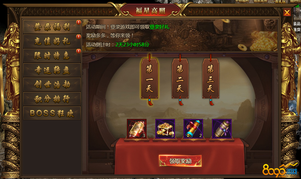 活动内容:活动期间击杀创世神BOSS达到指定数量即可领取奖励