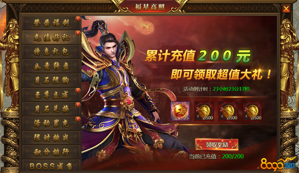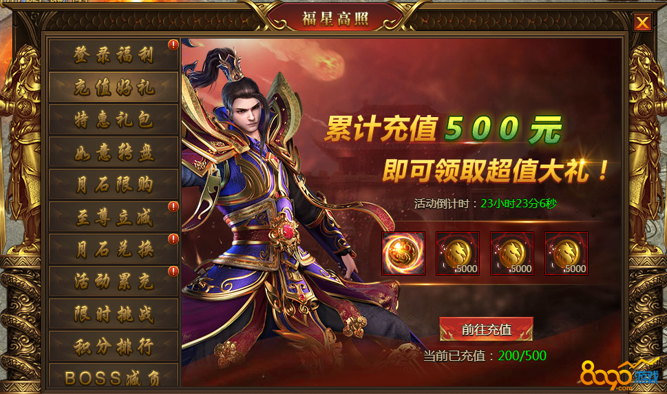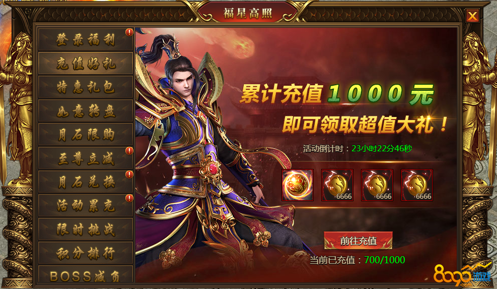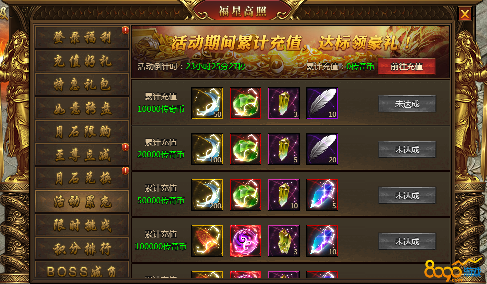 1.活动期间累积充值达到指定数额即可领取丰厚大礼