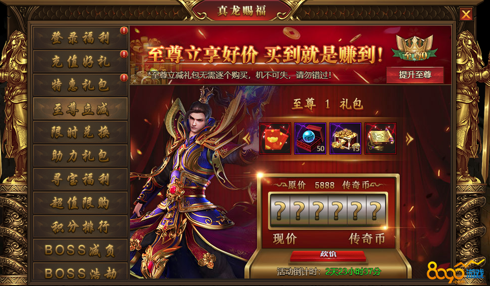 活动内容:活动期间满足至尊等级条件可消耗传奇币购买各种砍价礼包