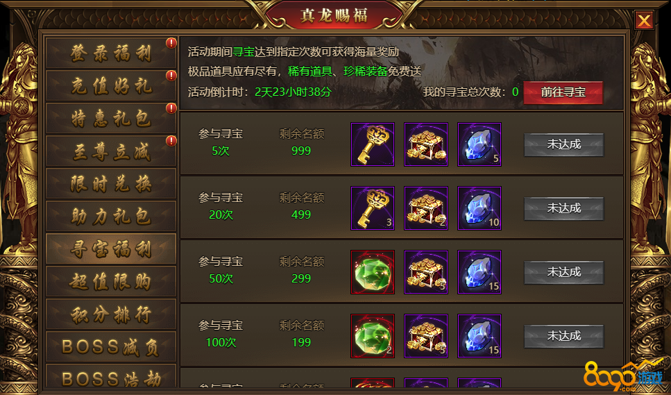 1. 活动期间打成寻宝次数任务,获得超值奖励