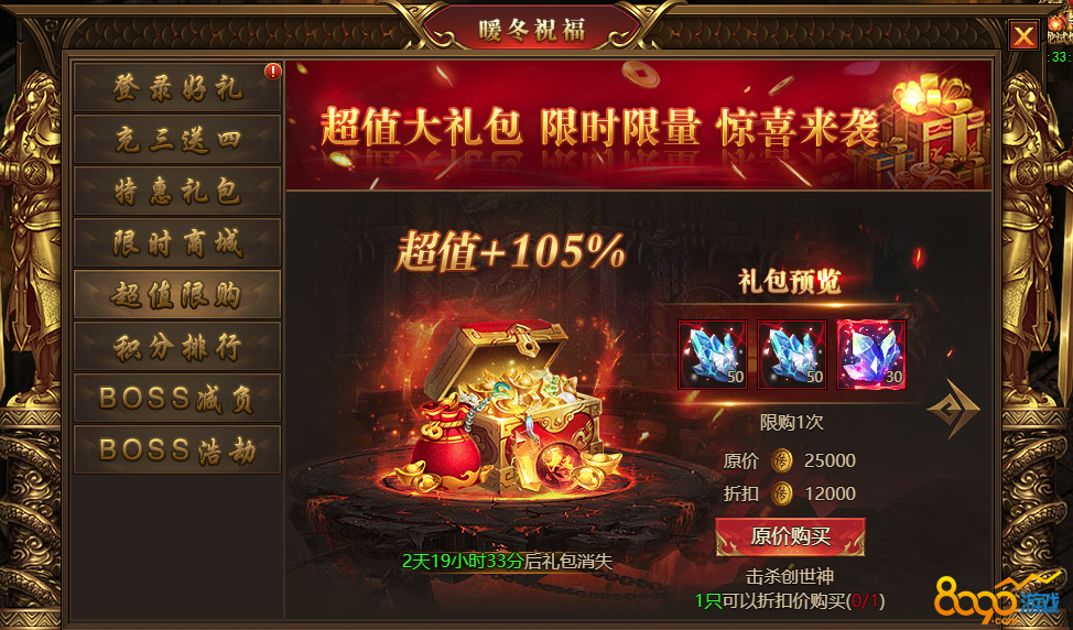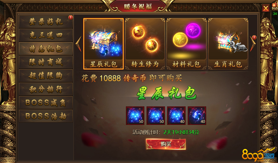 活动内容:活动期间消耗传奇币即可购买特惠礼包