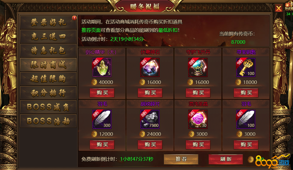 活动内容:活动期间可以消耗传奇币购买折扣道具