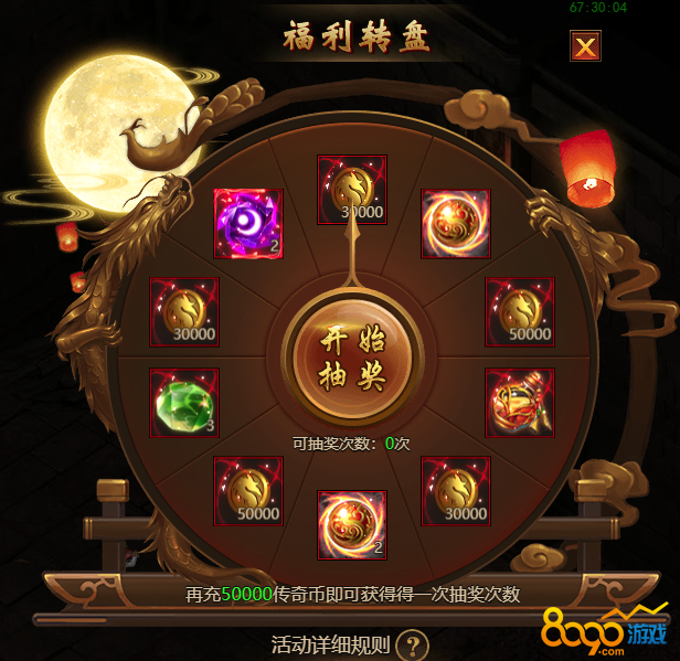 1.活动期间充值获得转动转盘次数,转完转盘可获得全部奖励