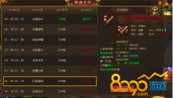 1、活动中的BOSS有更高的几率爆出极品装备以及海量的元宝