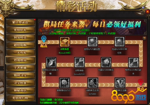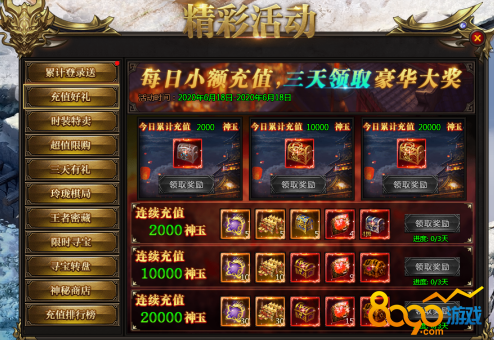 活动说:每日充值可以领取充值宝箱,连续三天充值更有额外极品奖励