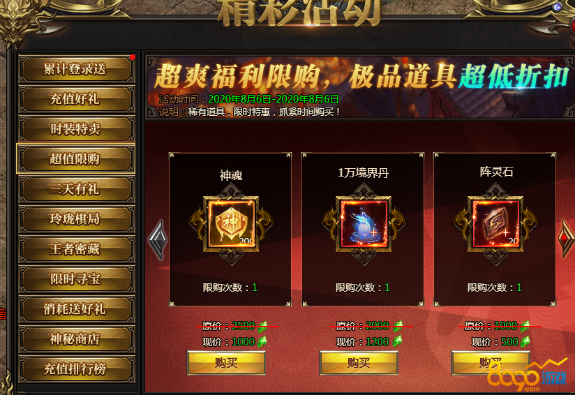 活动说明:各种稀有道具限时购买