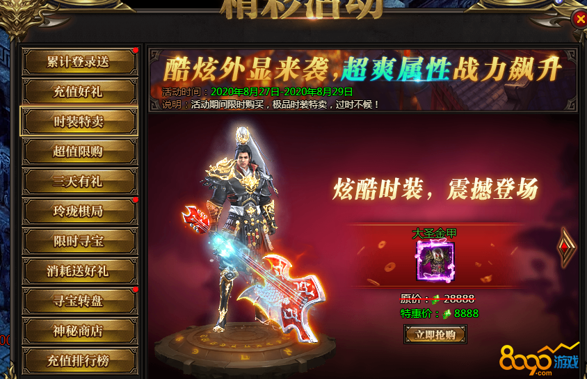 搜索"8090网页游戏"活动时间:8月27日00:00----8月29日24:00