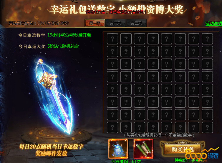 活动说明:购买礼包获得幸运数字,即可参与超级大奖