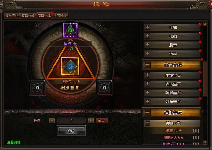 神格可通过打BOSS或使用藏宝图方式获得。如果我们玩家获得很多低级的多余神格,也可点击“锻造”,通过合成方式获得更高一级的神格。
