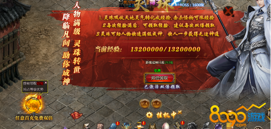 这个游戏充钱有个好处可以激活双倍灵珠领取(升级必备)基本第一天勤劳一些稳稳上1000级。