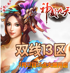 8090神武九天双线13区将于2013年9月27日16时撼世开启!欢迎广大新老玩家入驻。同时神武九天官方为大家准备了丰富精彩的新服活动,海量奖励等你拿!