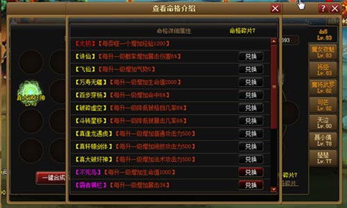 当玩家到达60级后,使用元宝猎命将大概率获得命格碎片,同时元宝猎命获得太初等命格的几率不变。命格碎片可兑换高级的命格,但需要积累一定的数量。猎命的时候就能得到一些命格碎片,相比目前只能卖商店的灰色命格无疑是一大进步。