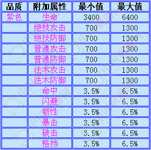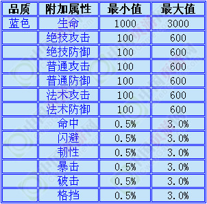 其具体属性加成请看以下列表:
