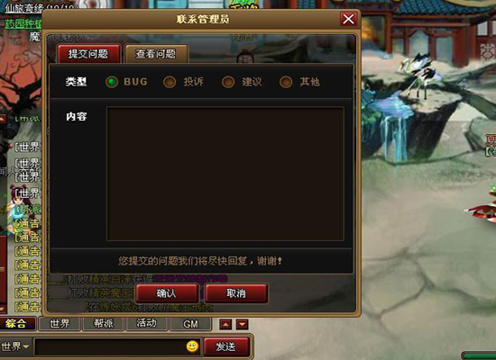 《神仙道》的聊天系统非常方便快捷。在游戏界面的左下角有个聊天屏幕,分栏为综合、世界、帮派、活动和GM频道。目前此版本讲话都是默认世界频道,不同于其他游戏,在《神仙道》世界讲话是不需要花费金钱或体力的,玩家间的交流更加紧密方便。此外,发现BUG,遇到麻烦,可以通过GM频道找GM!让GM为你排忧解难。