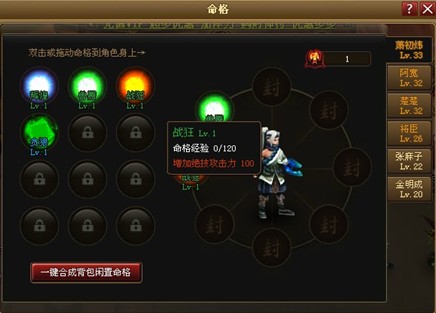 所谓“命格”,就是人生命运的一部分,拥有一个优质的命格,无论是攻击还是防御,都会有质的突破。在游戏中,每个人都能参与“猎命”,找到猎命师,就能猎取到神秘的命格,悄然改变自己的命运!每次猎命都需要花费一定铜钱,对于劣质的或是不需要的命格,也可以转手卖出去,回流资金,直到找到能改变自己命运的“命格”!猎取到好“命格”的玩家不代表从此无忧,所有的命格都能进行命格吞噬,提升命格属性。产生更加强大的攻击力和防御力。