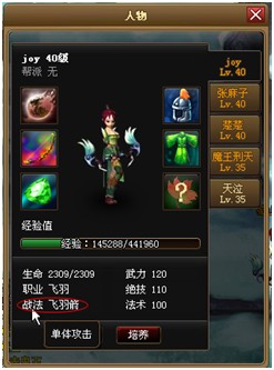 需要查看角色绝招时,你可以通过点击人物面板打开,可查看。比如说武圣的绝招有崩劲,还有长得像熊猫的武圣阿宽,他的绝招就是野球拳。剑灵的绝招有大名鼎鼎的御剑术,非常具有杀伤力。如果你选择的是剑灵就非常希望在关键时候使出他的绝招御剑术。当然同样是剑灵的楚楚,她的绝技是剑流云,也非常震慑人心,用起来叫爽。飞羽的绝技有飞羽箭,速度相当快。术士的绝技有惊雷震。这里面提到的绝技都是自身就具有的绝技,当你等级越高,获得了的藏经阁的奥秘后,绝技就能进一步升级,而且能获得更多绝技。