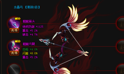 (6)扩展思维,属性也可以转换。比如下图中“闪避”是剑的属性最佳,给弓没什么用,那么带着这把弓就把他转换成了“剑”的灵件啦!