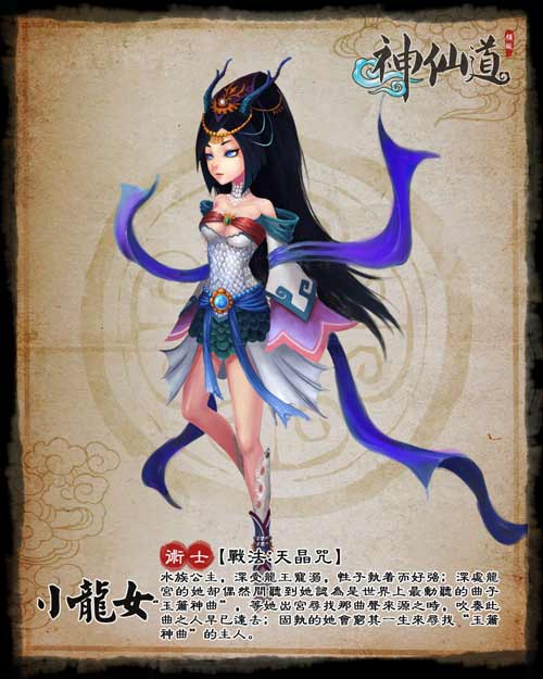 (魔鬼身材精灵面孔) 而从小在冰冷深海中长大的小龙女,性子执着好强,是个冰山美人。身处龙宫的她因为偶然间听到她认为是世界上最动听的曲子“玉箫神曲”,就穷极一生在寻找神曲的主人,但吹奏人早已不知去向。冷漠的公主也有柔情一面,只等有缘人融化她内心的冰冷。