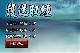 点击护送取经的图标进入取经的界面,可以看到每天可以拦截其他玩家的次数,自己取经的次数以及帮好友护送的次数。