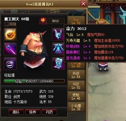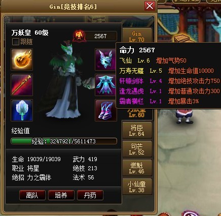 另外到了后期。命格应该带+暴击,+闪避,+格挡,+命中, 龙虎,轩辕什么的可以退休啦。。。
