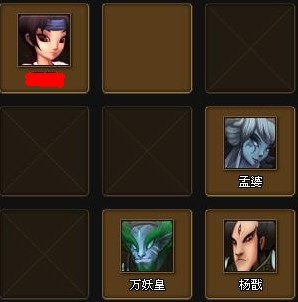 大r这时有公主的华重点培养公主,弄个黄色鞋子黄色武器和黄色元神,第四基本没有很大难度,第五个也应该问题不大就是要多打几次我们来讨论一下多数玩家情况,如果刚带上杨戬,其装备和命格都没有上来时,第三个都很难打,这里 我们看一下90级战力低于90000的玩家打前3个桃子如何布阵,命格要求基本和上图类似全5级以上是必须的(很容易实现),如果没有杨戬基本上只能打2个桃子,第三个很难,布阵图如下: