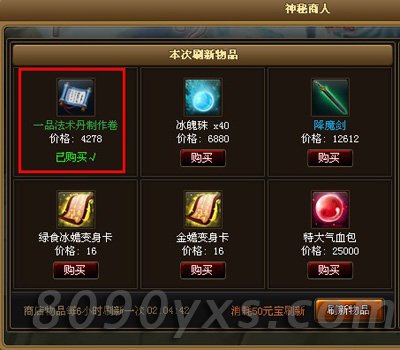 仙丹制作券,我们姑且把它称作炼丹炉(通俗易懂)。可以通过两种途径获得,一是在京城的【玉牌商人】处用玉牌兑换(玉牌可以通过参加每天的多人副本打到);第二种得到“炼丹炉”的方法是在门派城【神秘商人】用铜币来购买,能不能刷到高级的要靠RP了。
