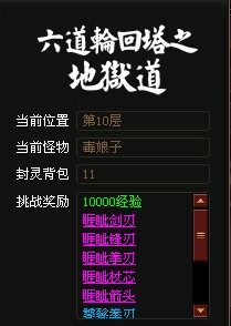 神仙道六道轮回塔第10层心得攻略 第十层铁娘子怎么打 地狱道10层毒娘子比5层的魔剑狠多了,特技依然是全体攻击。不过好在前面没有肉盾还是后手攻击,把飞仙给小倩/,一个特技下去就消停了。不过这里小怪就有点厉害了,如果玩家还是50级多点的话会很吃力,需要再练练才行了。