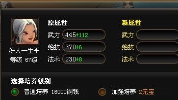 9.培养要尽快每隔级别的9级培养一次,因为培养的价格是不一样的,比如69时候1.6W,59时候1W。但是69和60的价格是一样的《69赚钱比60快呵呵》。上限为等级X2+20