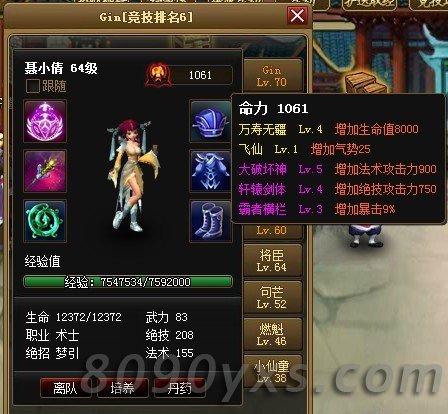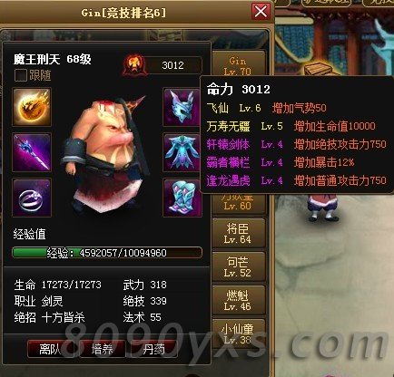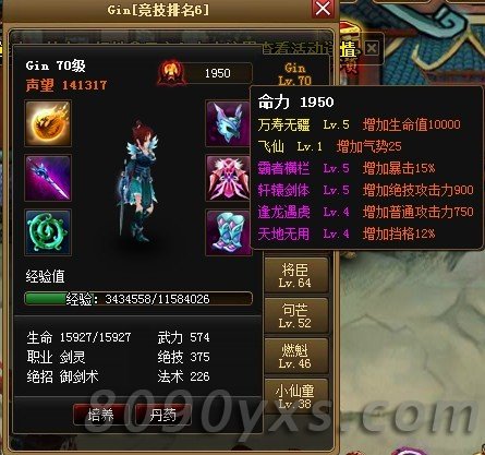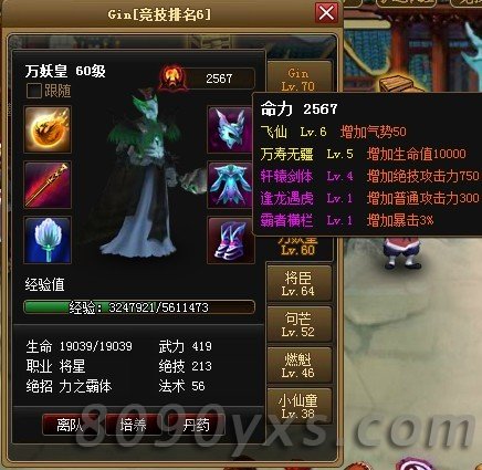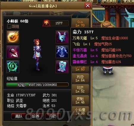 另外到了后期。命格应该带+暴击,+闪避,+格挡,+命中, 龙虎,轩辕什么的可以退休啦。。。