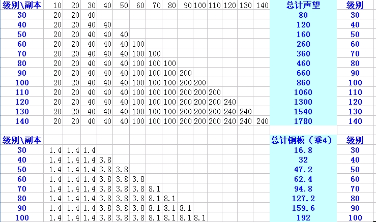 当然这对于声望已满的人来说,这就显得不太公平了。 100级以后的牌子铜钱没统计,没打过的表示不知如何下手。如有错误,欢迎指出 。