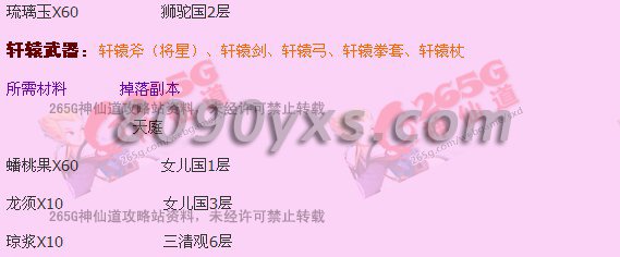 网页游戏神仙道155级都有什么装备材料,轩辕装备材料有何轩辕武器,掉落副本在哪?