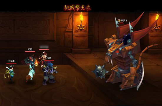 人多力量大!再强大的敌人也经不起众仙家轮番的轰炸!很快,在全服斗士的围追堵截下擎天木耐不住持久战败下阵来。六千多万的血就这样被我们一点点全磨掉!只要在战斗中对BOSS造成伤害都可以获得相应的声望、铜钱奖励。如果谁被幸运之神笼罩,给BOSS最后一刀,那百万的额外奖励就是你的啦!