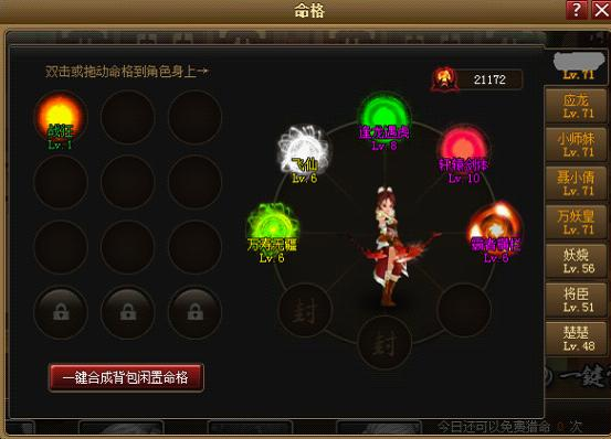 命格 猎命需要花费铜钱,猎命完便可获得相对应的命格,每个命格都会有自己的特色属性,有助于玩家的战斗力提高;